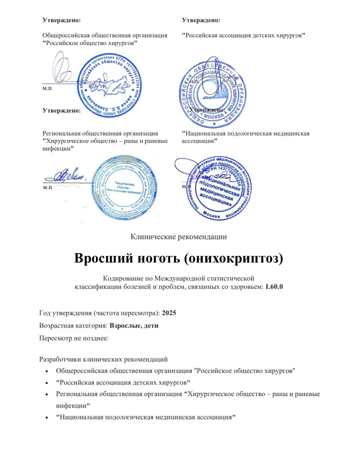 Национальная Подологическая Медицинская Ассоциация стала разработчиком Клинических рекомендаций по лечению вросшего ногтя